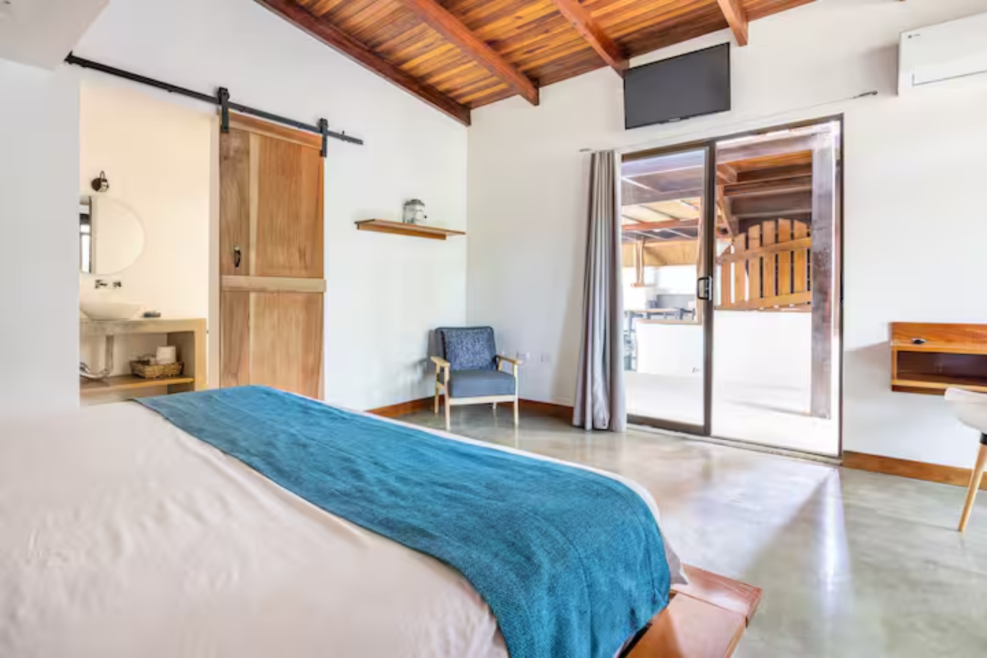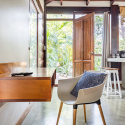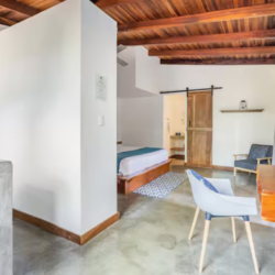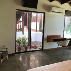 La cabina cuenta con cocina privada, baño privado con agua caliente, Wifi, heladera, aire acondicionado, cama king size y escritorio.