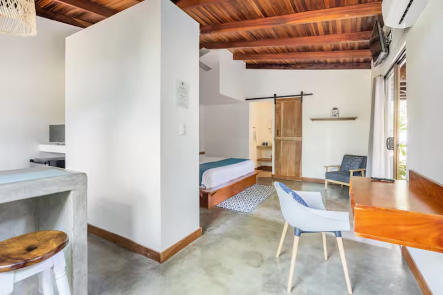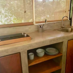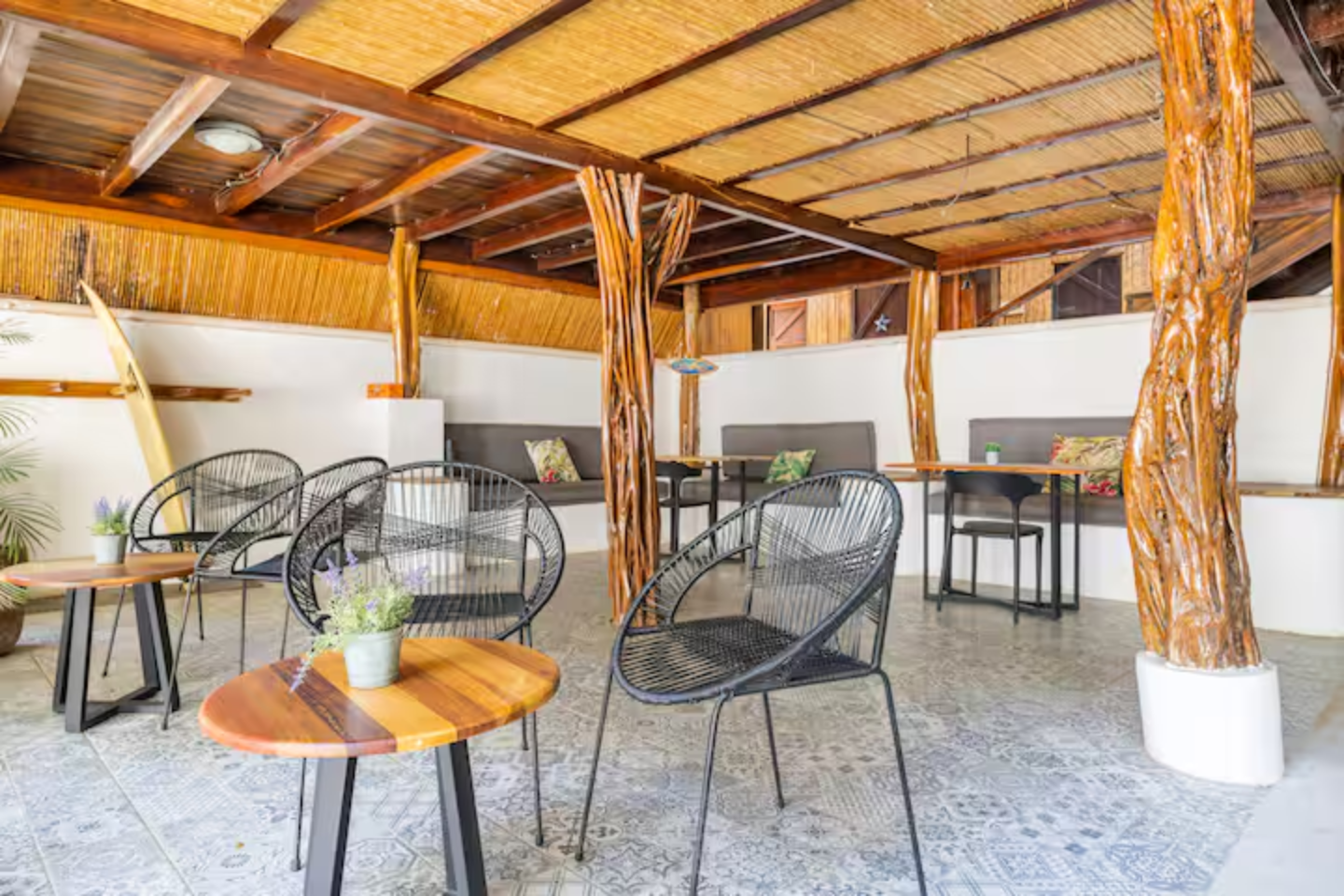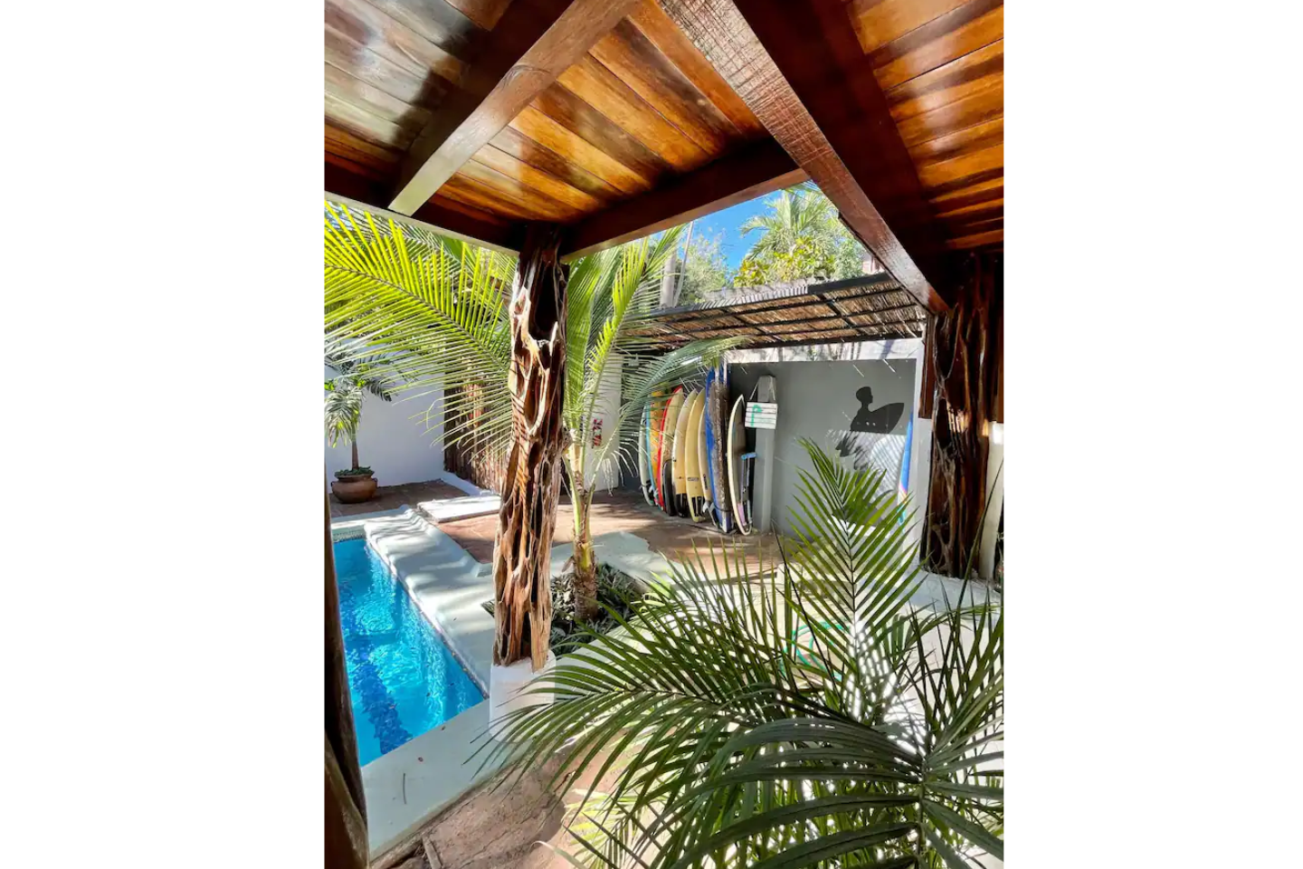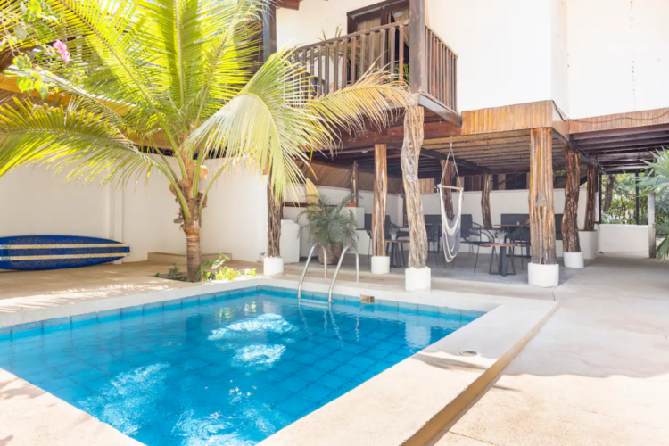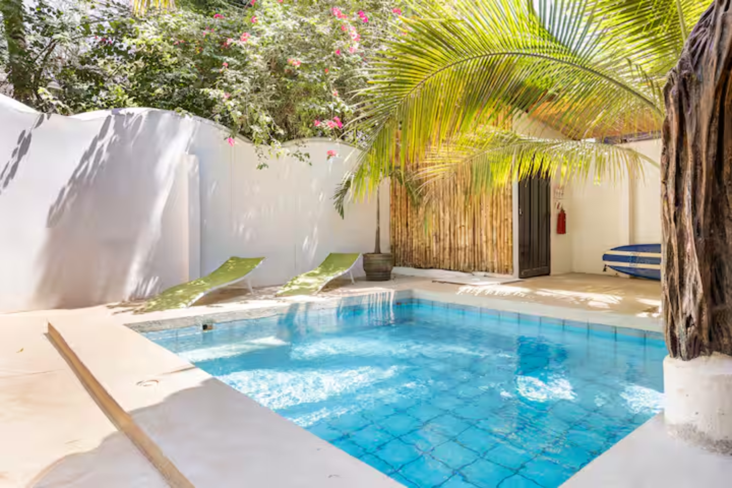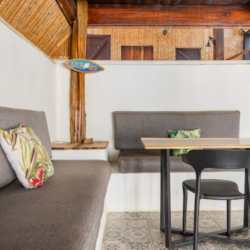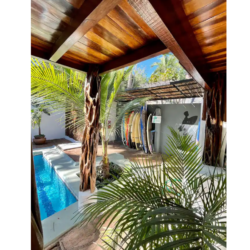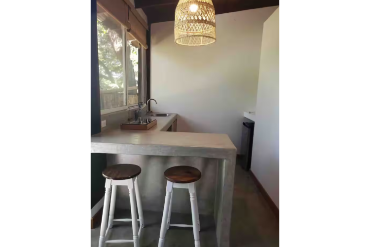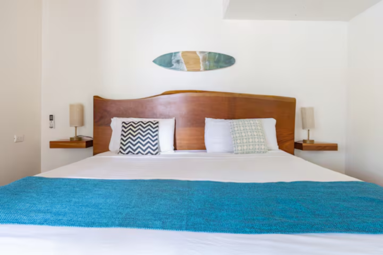 Cabinas tranquilas muy bien equipadas ya tan sólo 7 minutos a pie de la playa, cerca de surfshops, restaurantes y tiendas. Esta cabina cuenta con cocina propia, AC y piscina compartida